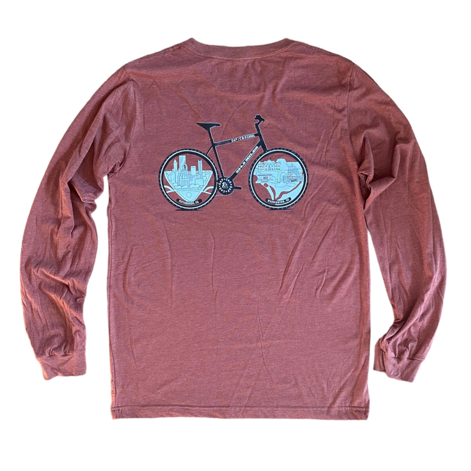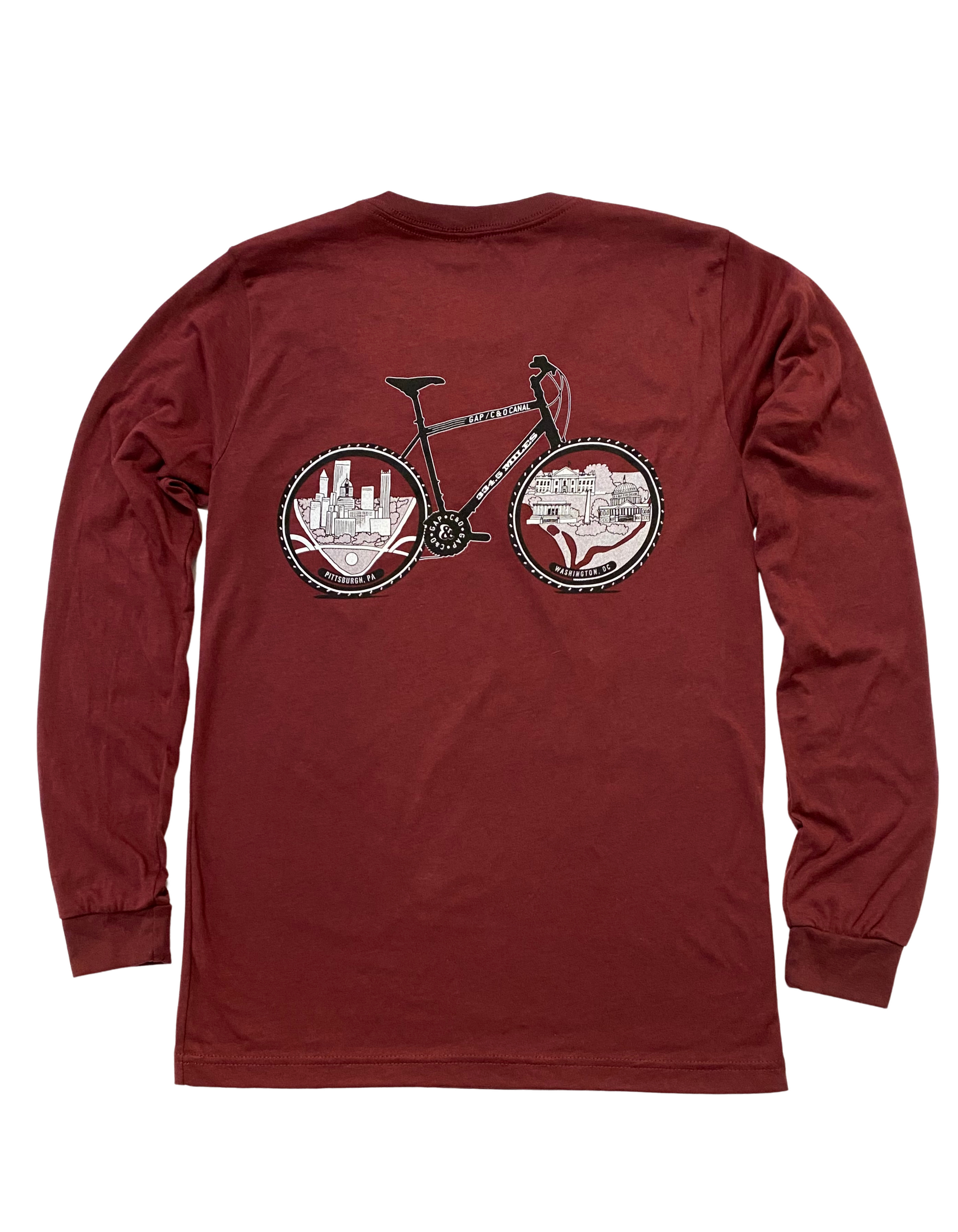 Commemorate your 334.5 mile ride on the GAP and C&O Canal Towpath, which extends from Pittsburgh, PA to Washington, DC. Soft tee. Great design, with bicycle design on the back of the shirt.