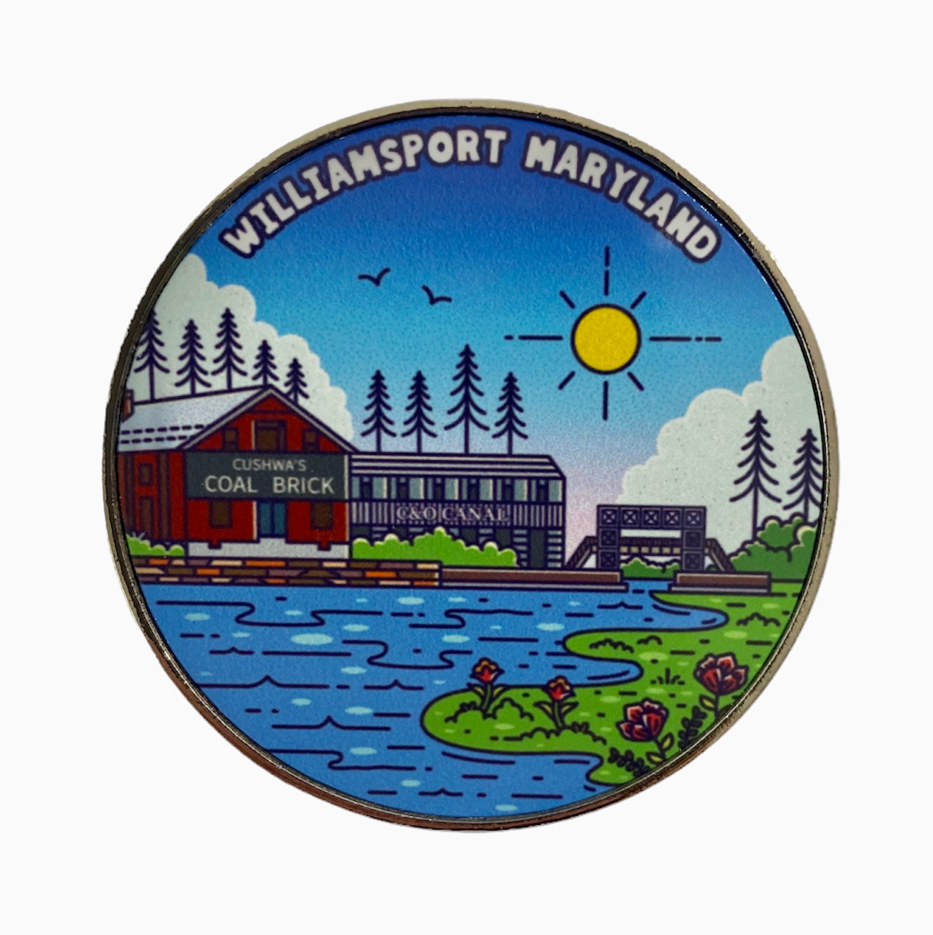 This 2" refrigerator magnet depicts the beauty of Williamsport, Maryland, a canal town along the Great Allegheny Passage (GAP).